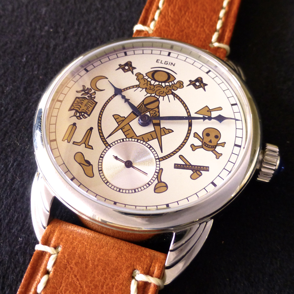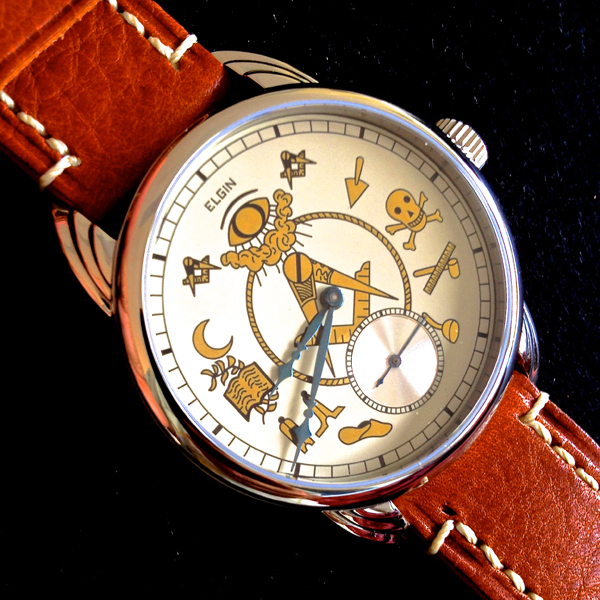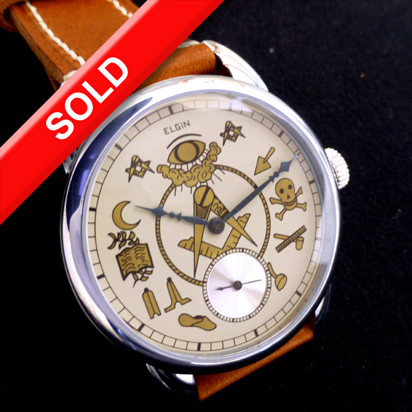 Steel with Original gold-toned Masonic Dial with Elgin hunters case movement from 1920