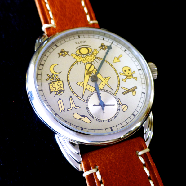 This watch is so interesting on many different levels. First off, it's just a fantastic looking watch. Secondly, it represents the Masonic Order blue lodge 1st, 2nd, and 3rd Degree. Thirdly, it has a very contemporary “tattoo” symbol looking dial, with the symbols in reflective gold paint. Lastly, it has a VERY collectable aspect, in that Masonic dials are very sought after. Personally, I just like it because it's just so much fun to wear!