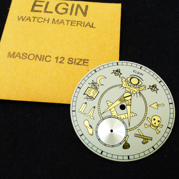 Mint condition original Elgin Pocket watch custom made Masonic Dial, with reflective gold paint. Represents the Masonic Order blue lodge 1st, 2nd, and 3rd Degree. Original blued steel Elgin hands.